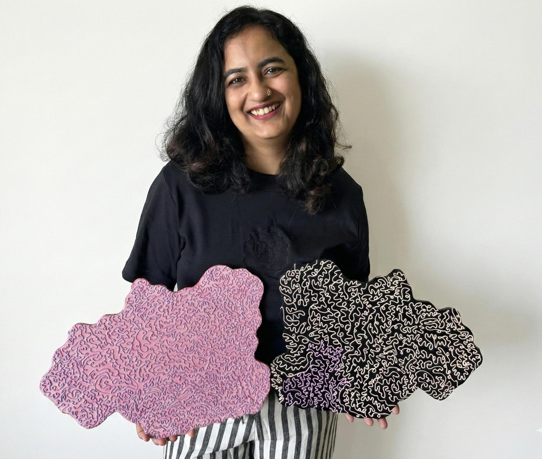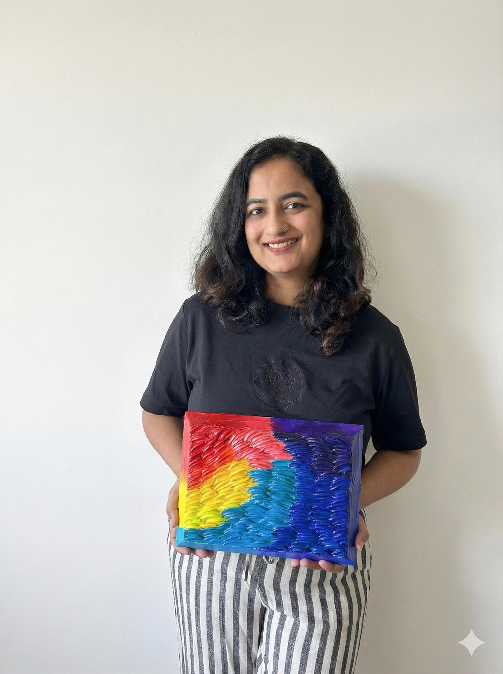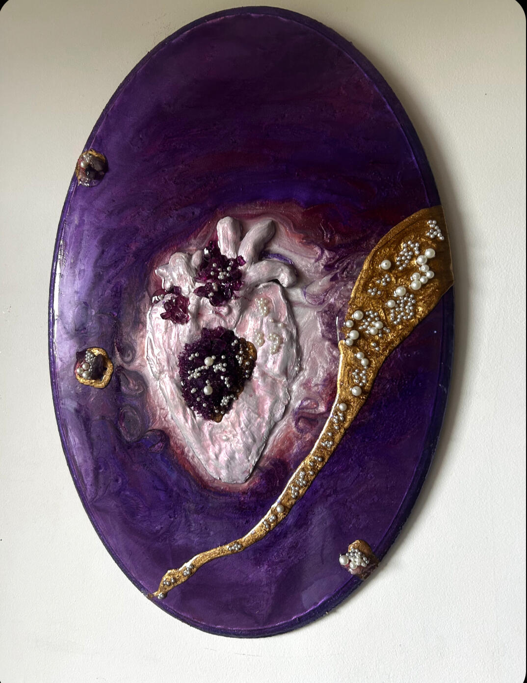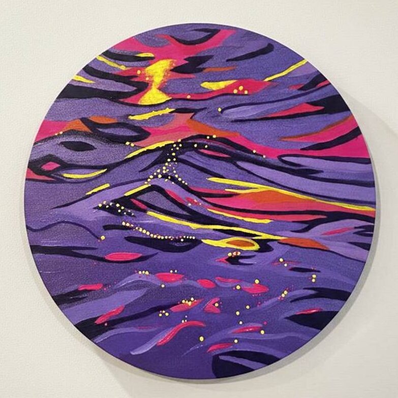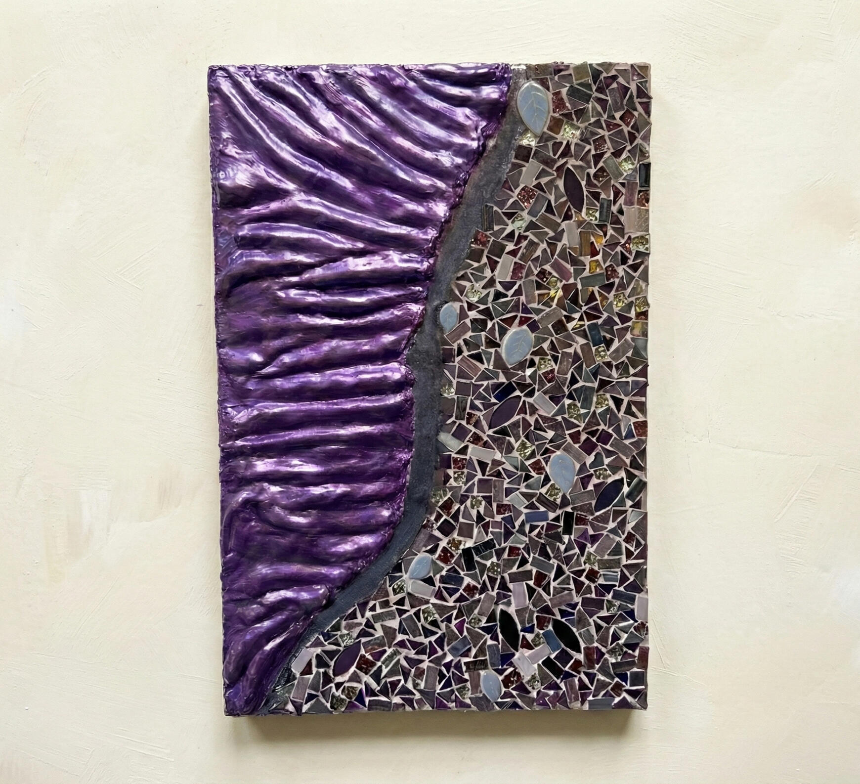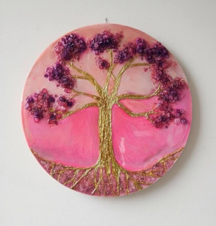 My brand nohuedidnt blends texture, storytelling, and surprise – combining materials like acrylics, textures, resin and mosaics into moments that feel both whimsical and grounded.