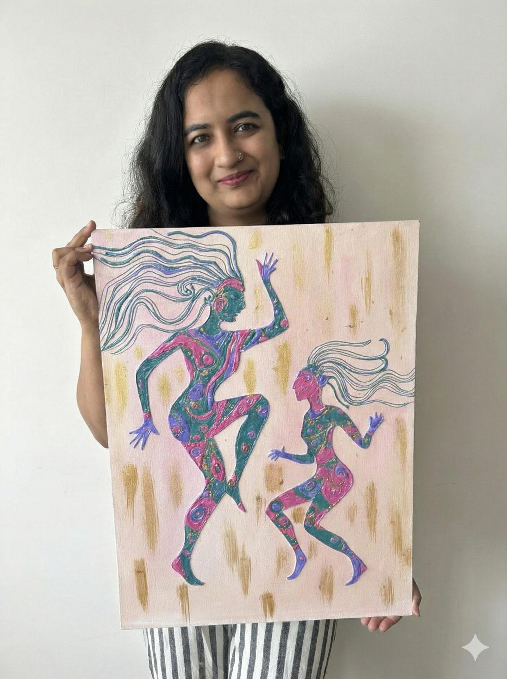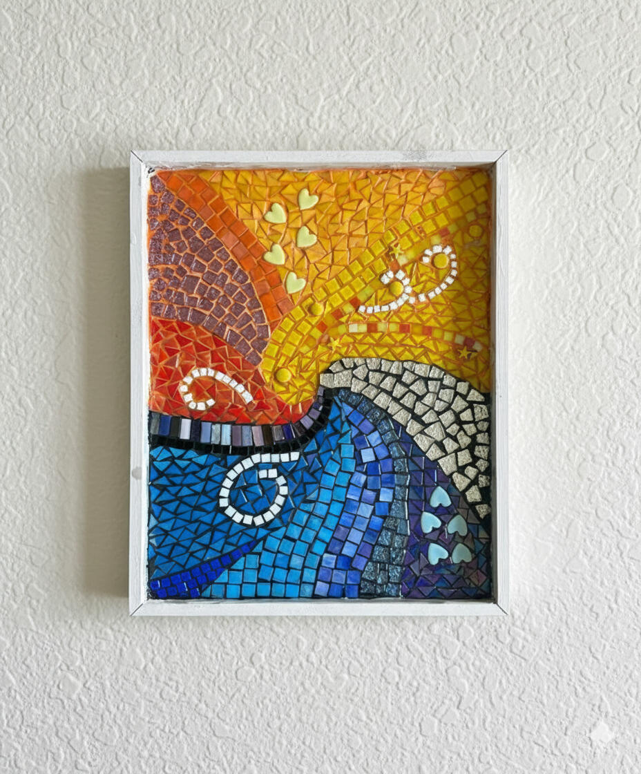 My brand nohuedidnt blends texture, storytelling, and surprise – combining materials like acrylics, textures, resin and mosaics into moments that feel both whimsical and grounded.